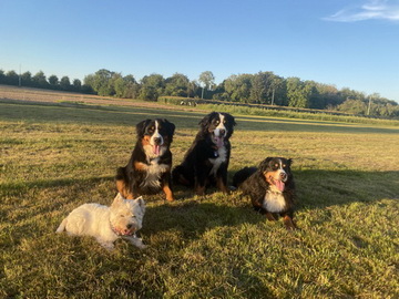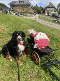 Wieder mit den Schweizer Sennenhunden unterwegs, erst Spaziergang in Unzhurst mit Wagenprobe...