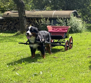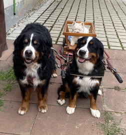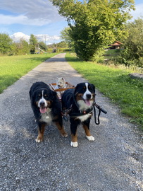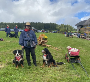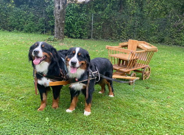 Wieder mit den Schweizer Sennenhunden unterwegs, erst Spaziergang in Unzhurst mit Wagenprobe...
