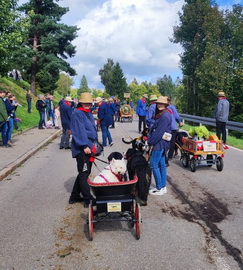 Abschlußwanderung mit den Zughundlern auf den Höhen um Lahr - Hanni mit dem Vesperwagen